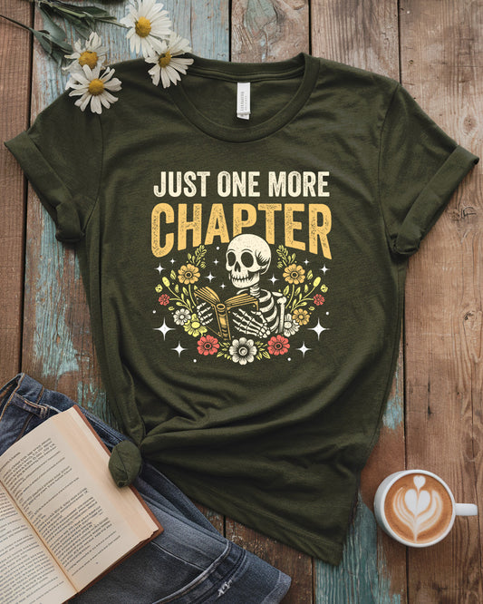 Just One More Chapter Tee, Skeleton Book Lover Tee