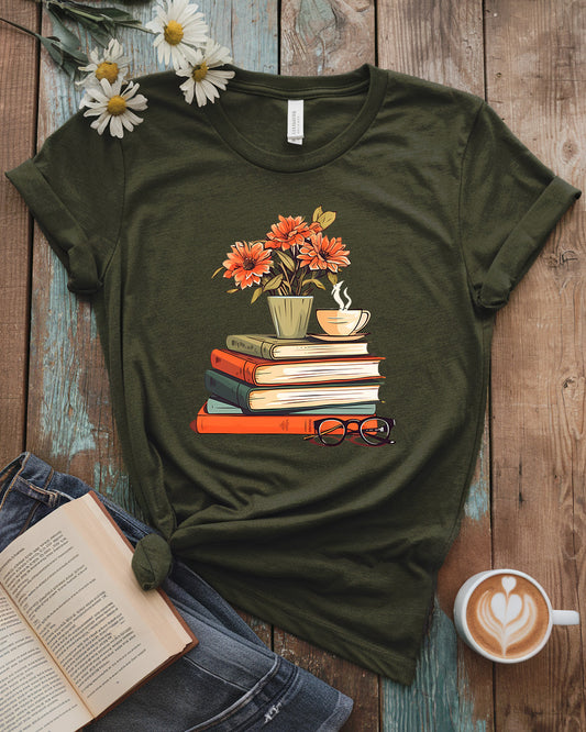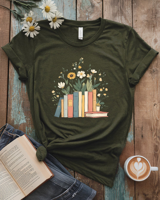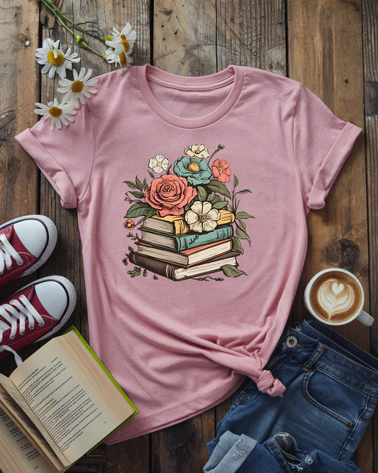 Floral Book Stack Shirt, Vintage Cozy Book Lover Tee
