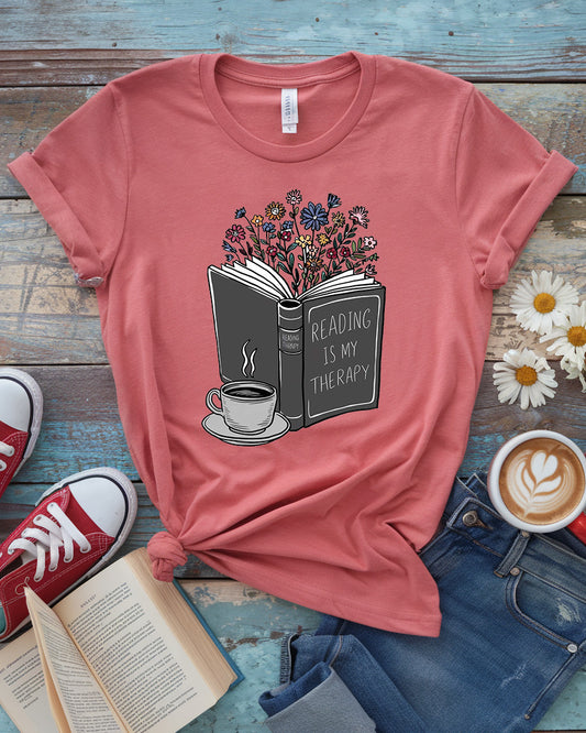 Reading Is My Therapy Shirt, Floral Book Lover Tee