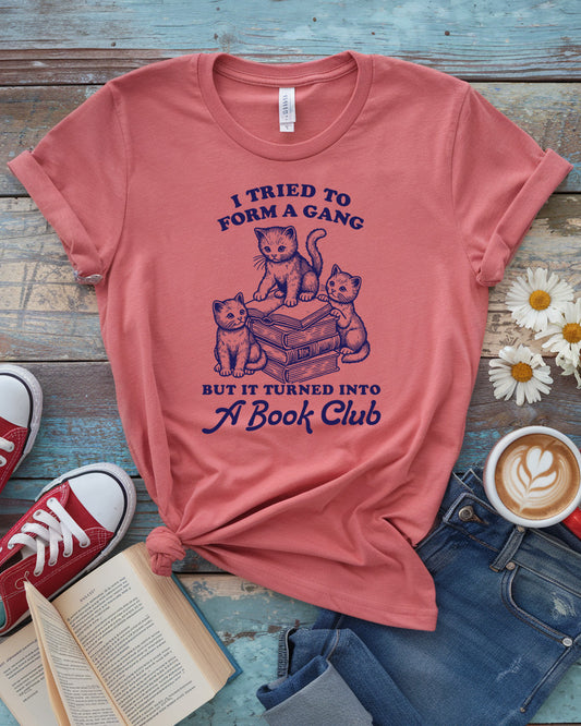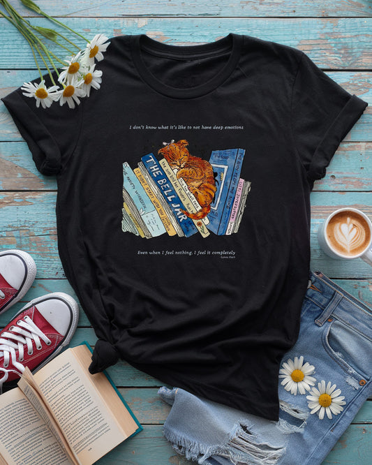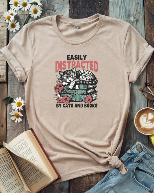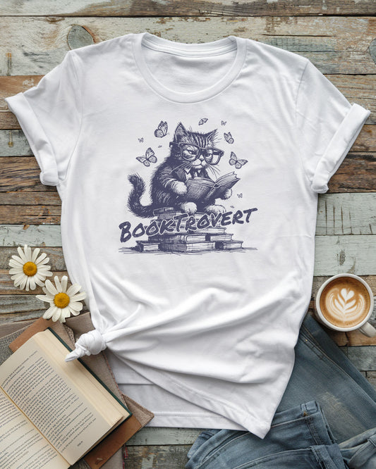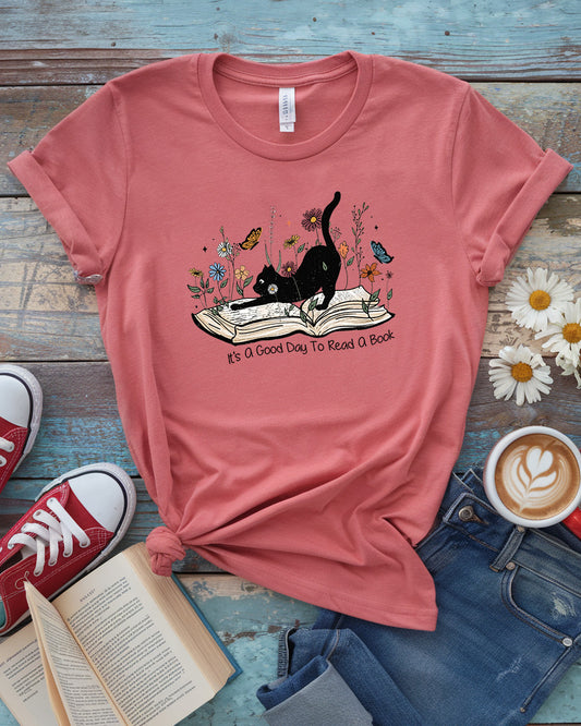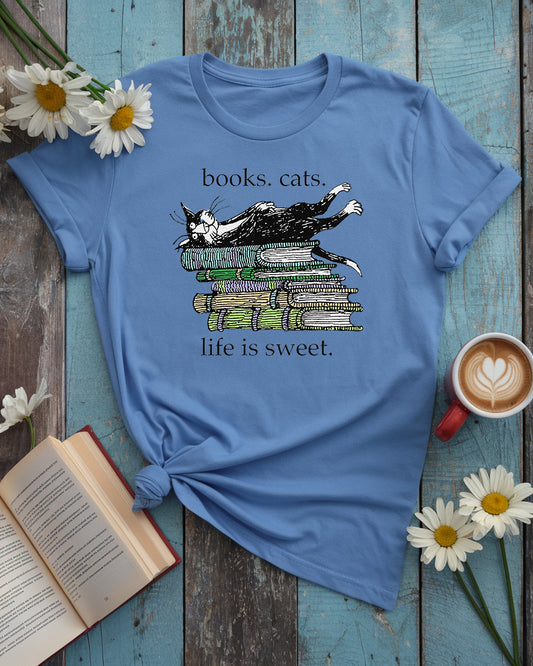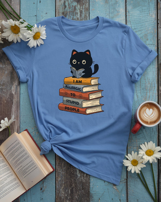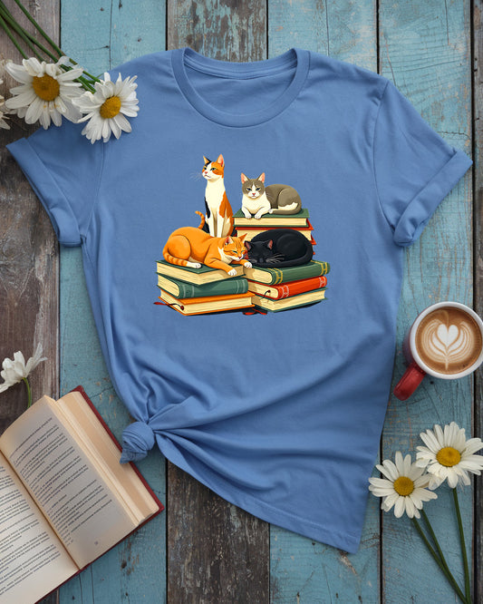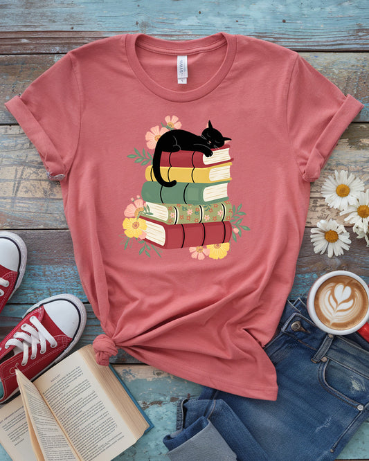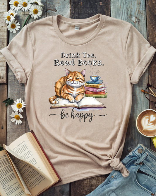 Drink Tea, Read Books Tee, Cozy Cat Lover Design