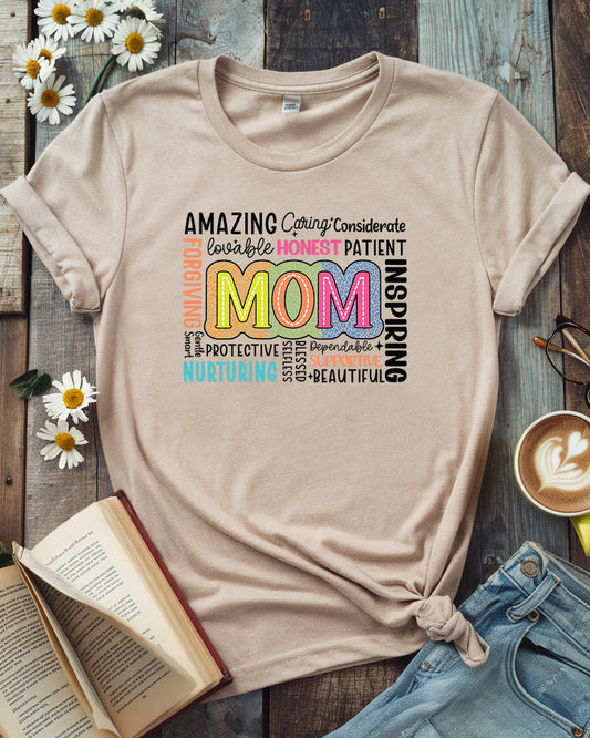 Mom Word Art Tee, Celebrating Motherhood Design