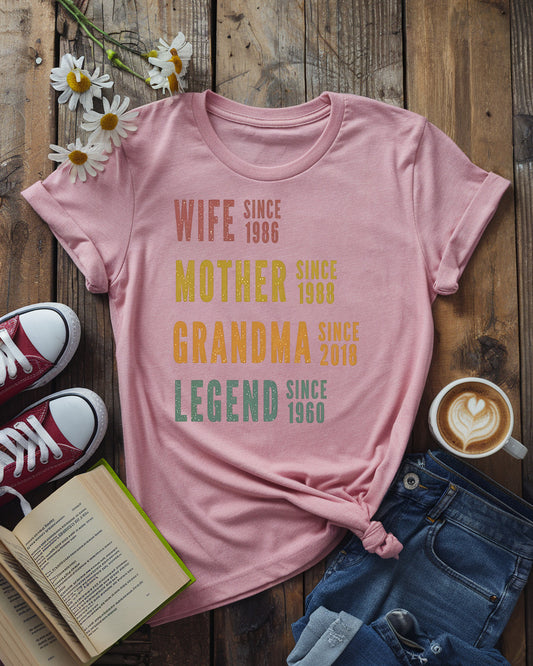 Wife Mother Grandma Legend Tee, Custom Year Family Milestone