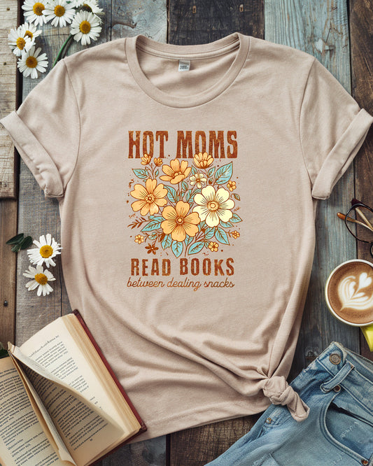 Hot Moms Read Books Tee, Floral Retro Book Lover