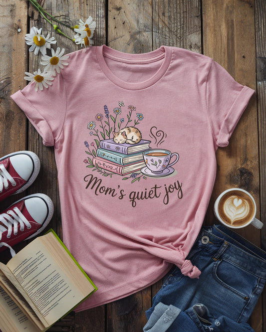 Mom’s Quiet Joy Tee, Cat, Books & Tea Floral